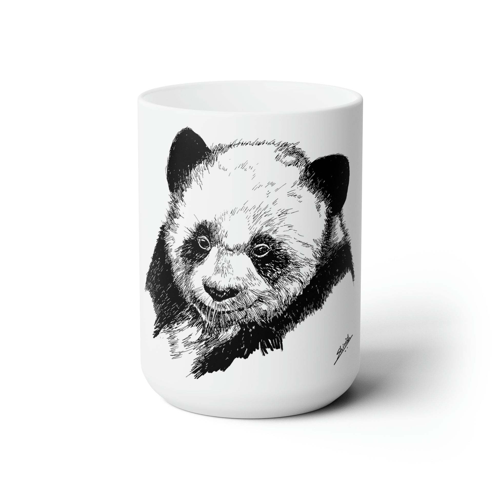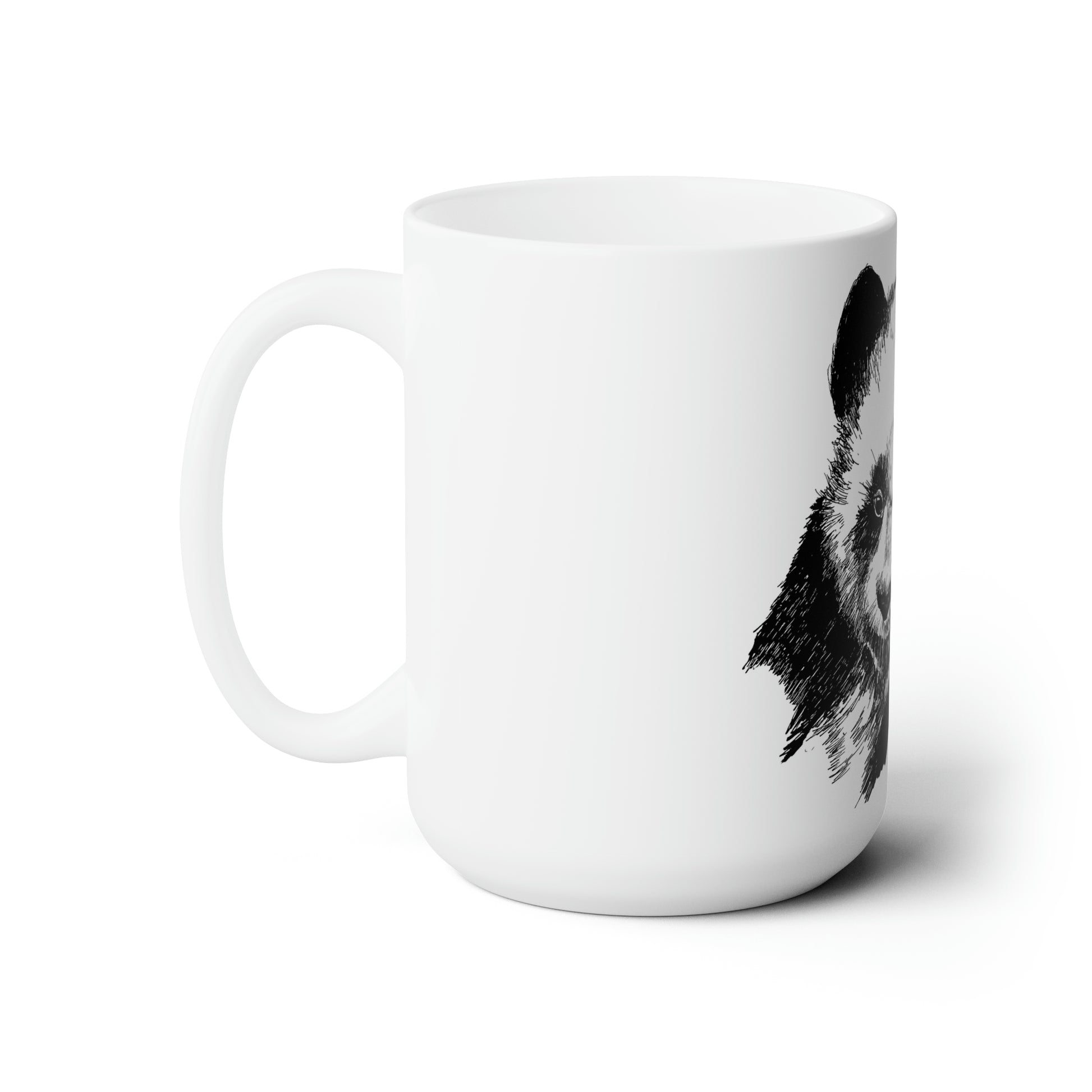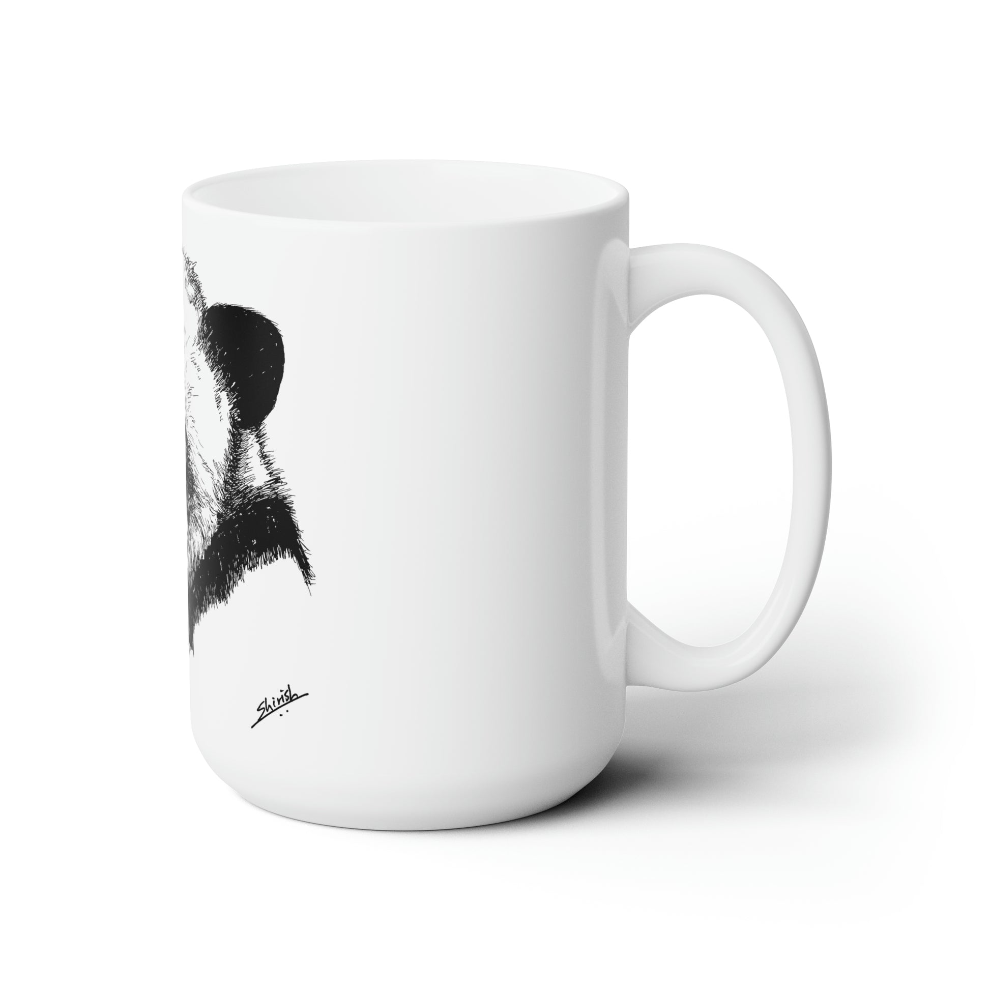 White Ceramic Mug 15oz - Minimalistic Monochrome Drawing of a Panda