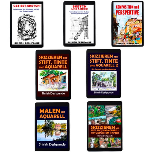 Stift, Tinte und Aquarell - 7 Ebooks-Bündel