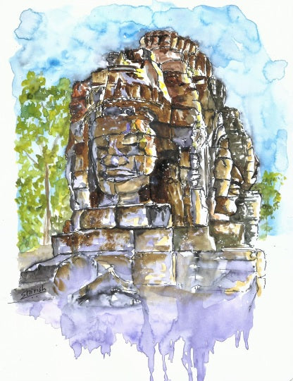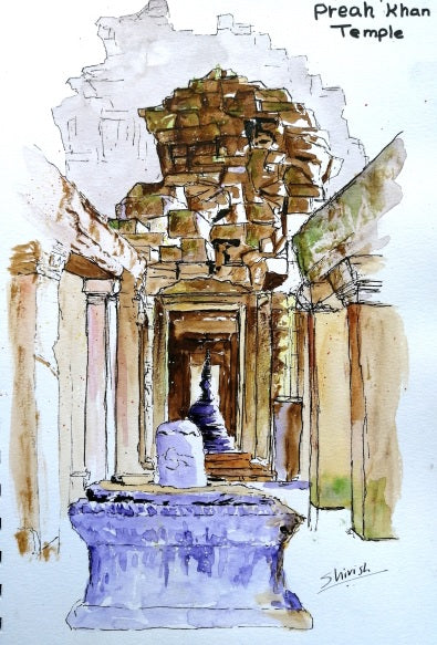 Ich bin 2019 nach Siem Reap gereist, um diese Tempel zu besuchen und zu erleben, wie man sie vor Ort skizziert. Die Reise erwies sich für mich als eine bereichernde und meditative Erfahrung. Mir wurde auch klar, dass das Zeichnen und Malen der Illustrationen dieser alten Tempel eine ebenso reizvolle wie herausfordernde Erfahrung ist.