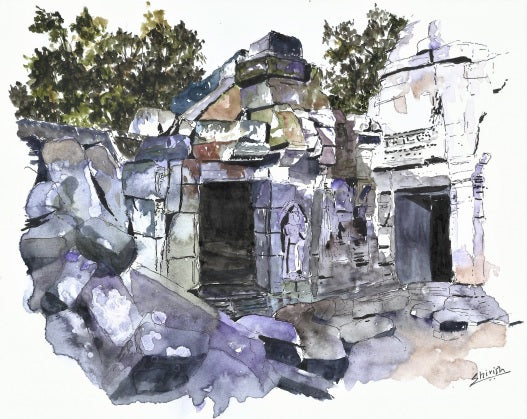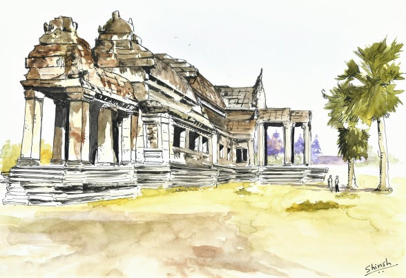 Je me suis rendu à Siem Reap en 2019 pour visiter ces temples et vivre l'expérience de les dessiner sur place. Ce voyage s'est avéré être une expérience enrichissante et méditative pour moi. J'ai également réalisé que dessiner et peindre les illustrations de ces temples antiques était une expérience tout aussi délectable que stimulante.