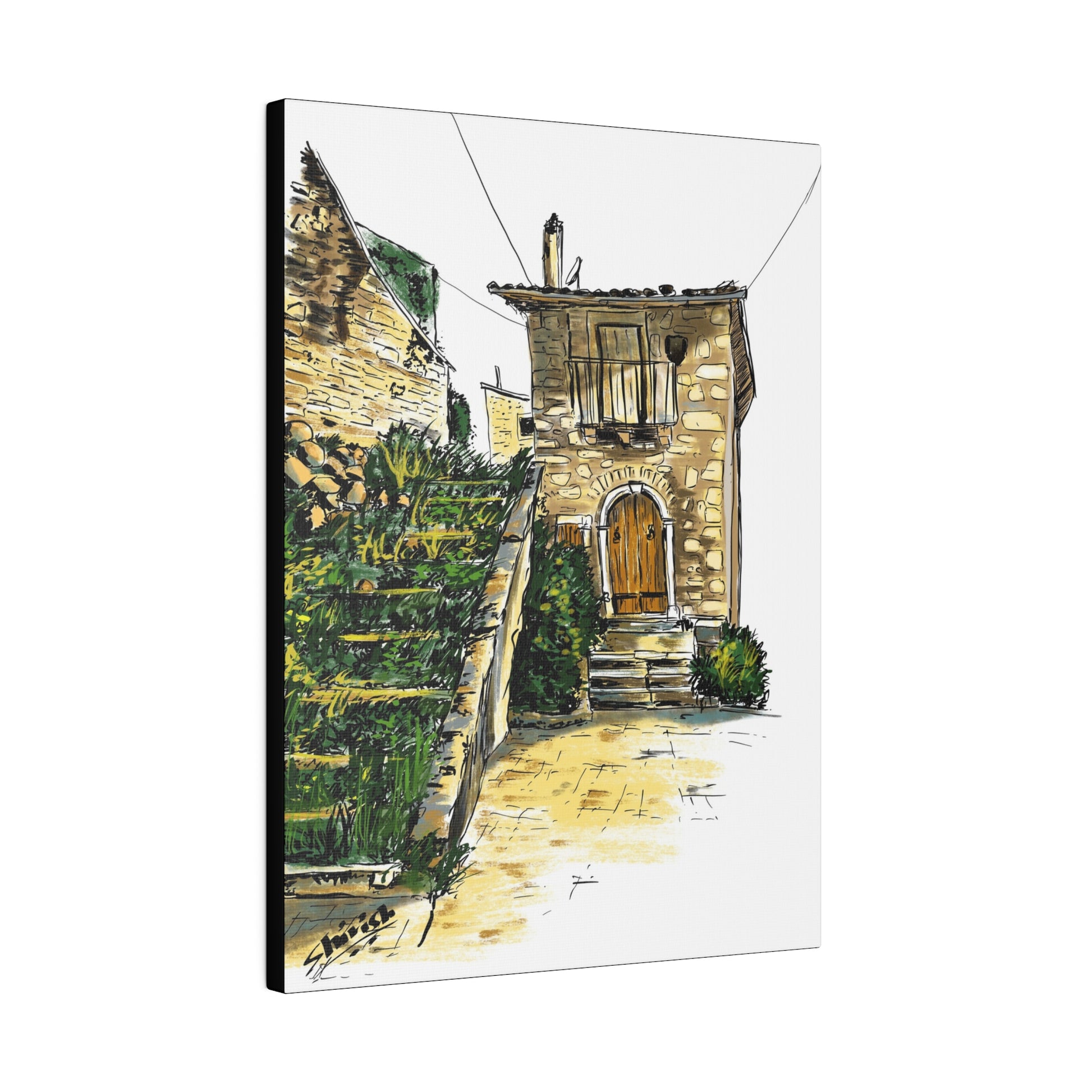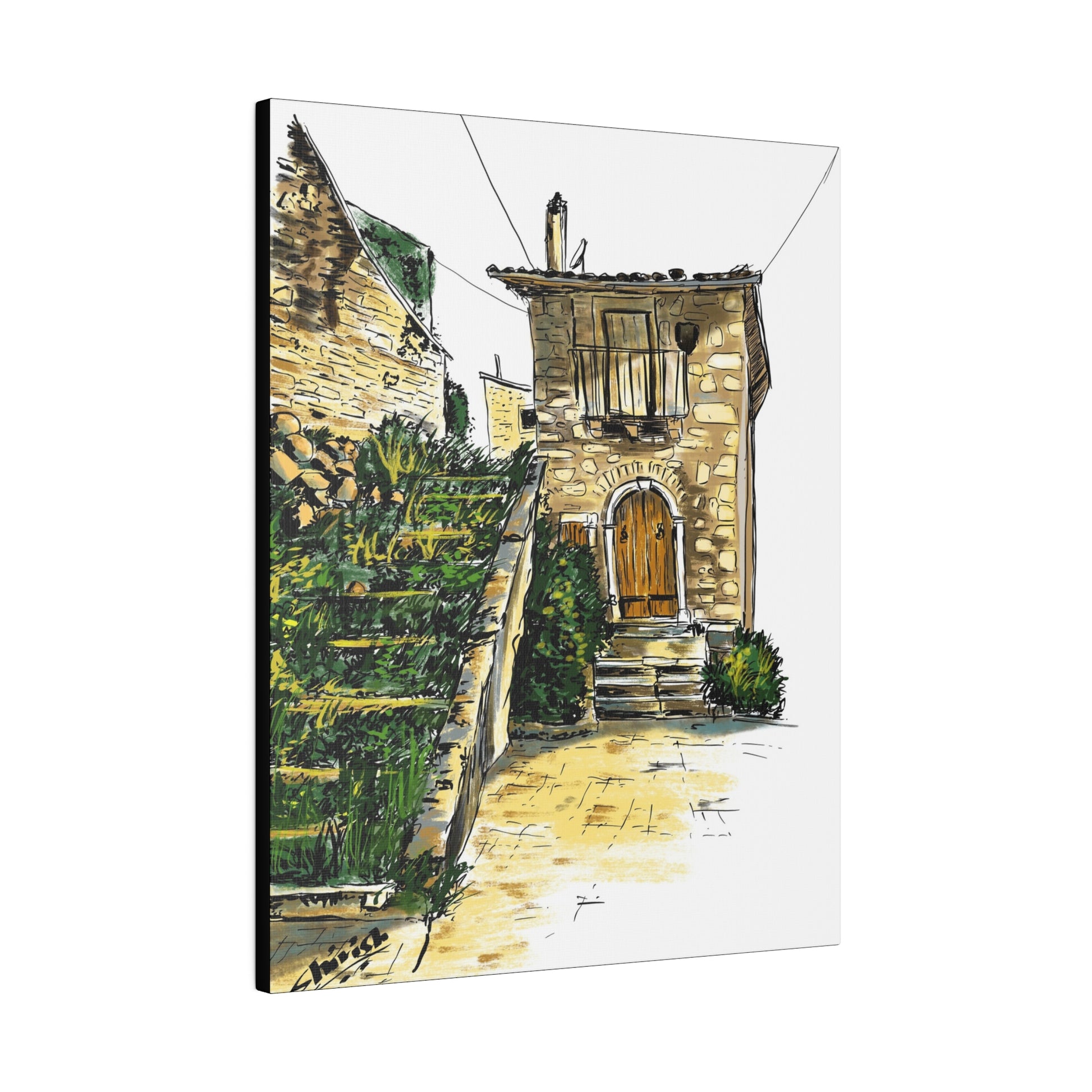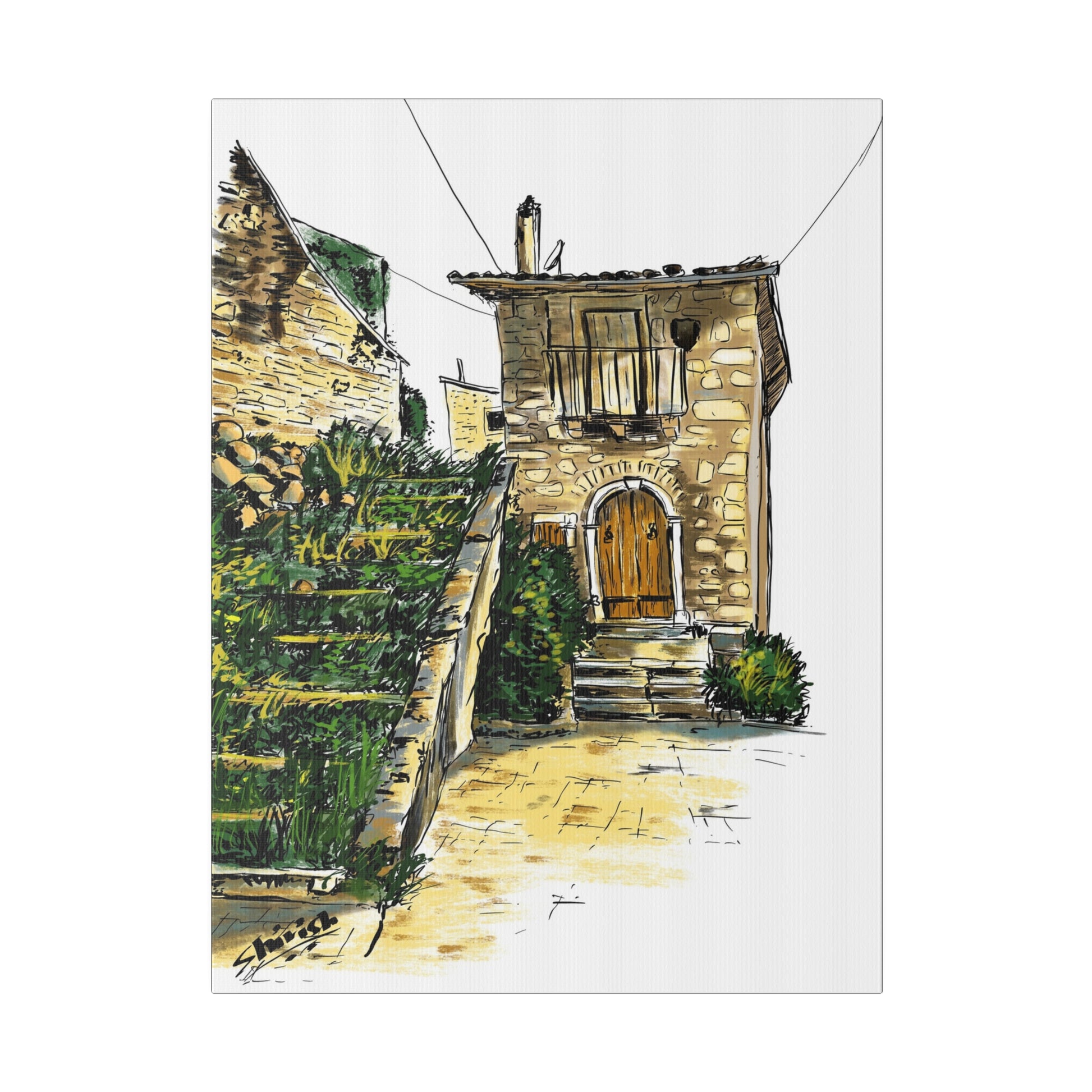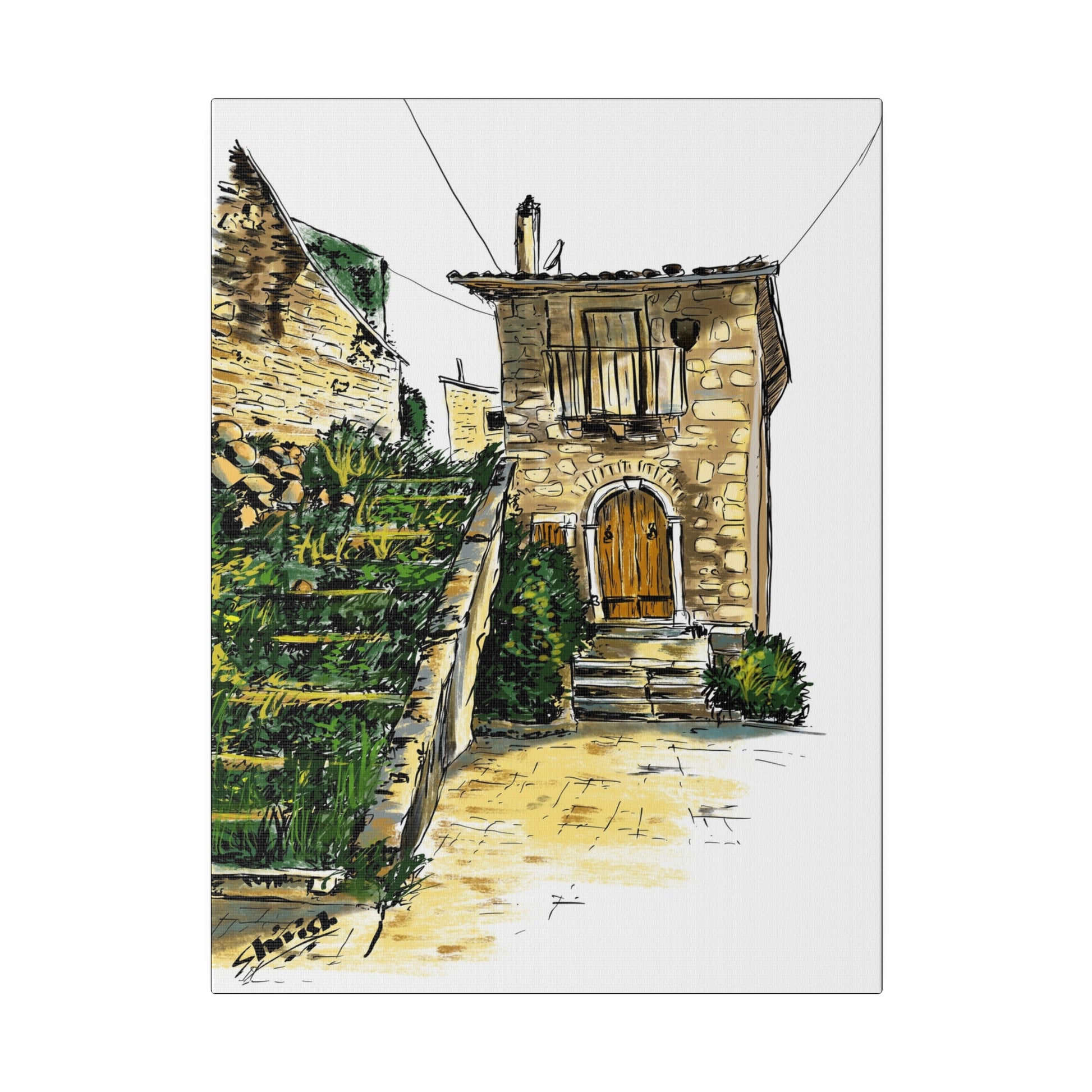 Embark on a journey through time with this captivating canvas print. A flight of stone stairs, overgrown with lush green weeds, beckons you towards an ancient town steeped in history. Flanked by crumbling old stone buildings exuding rustic charm, this scene transports you to a bygone era where every step holds the secrets of the past. Let the enchanting allure of this artwork adorn your space and ignite your imagination.
