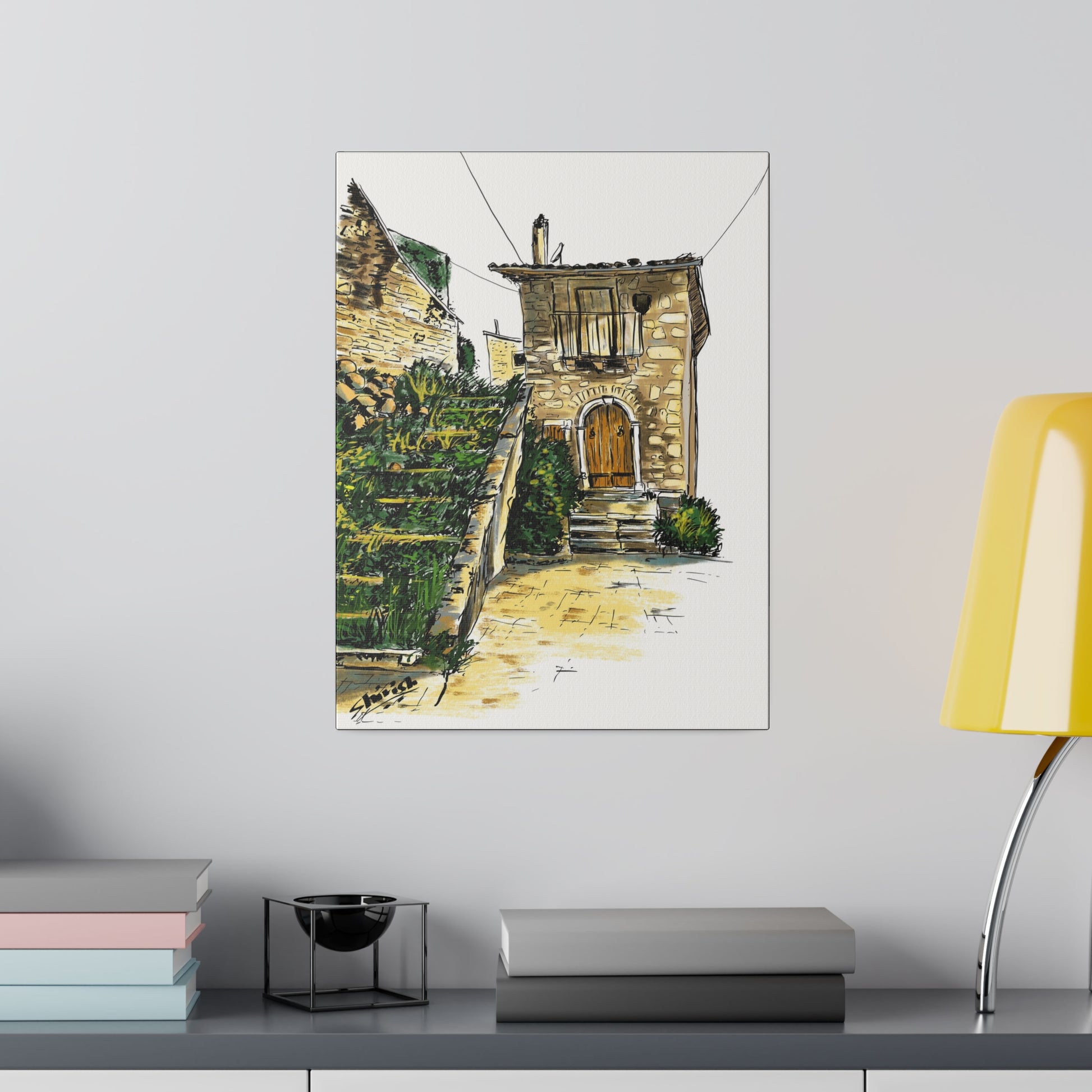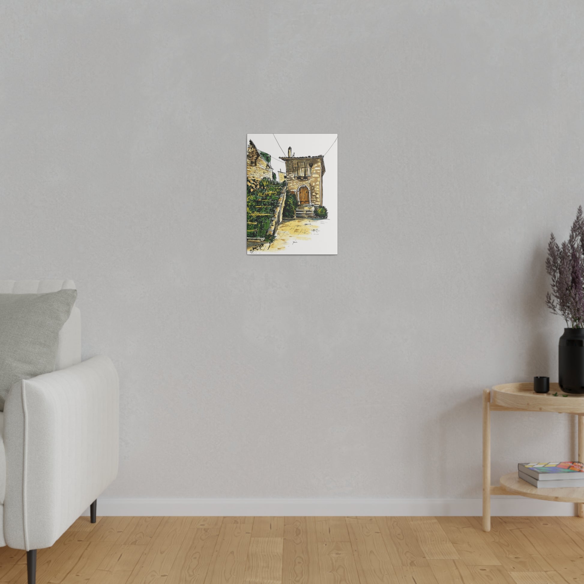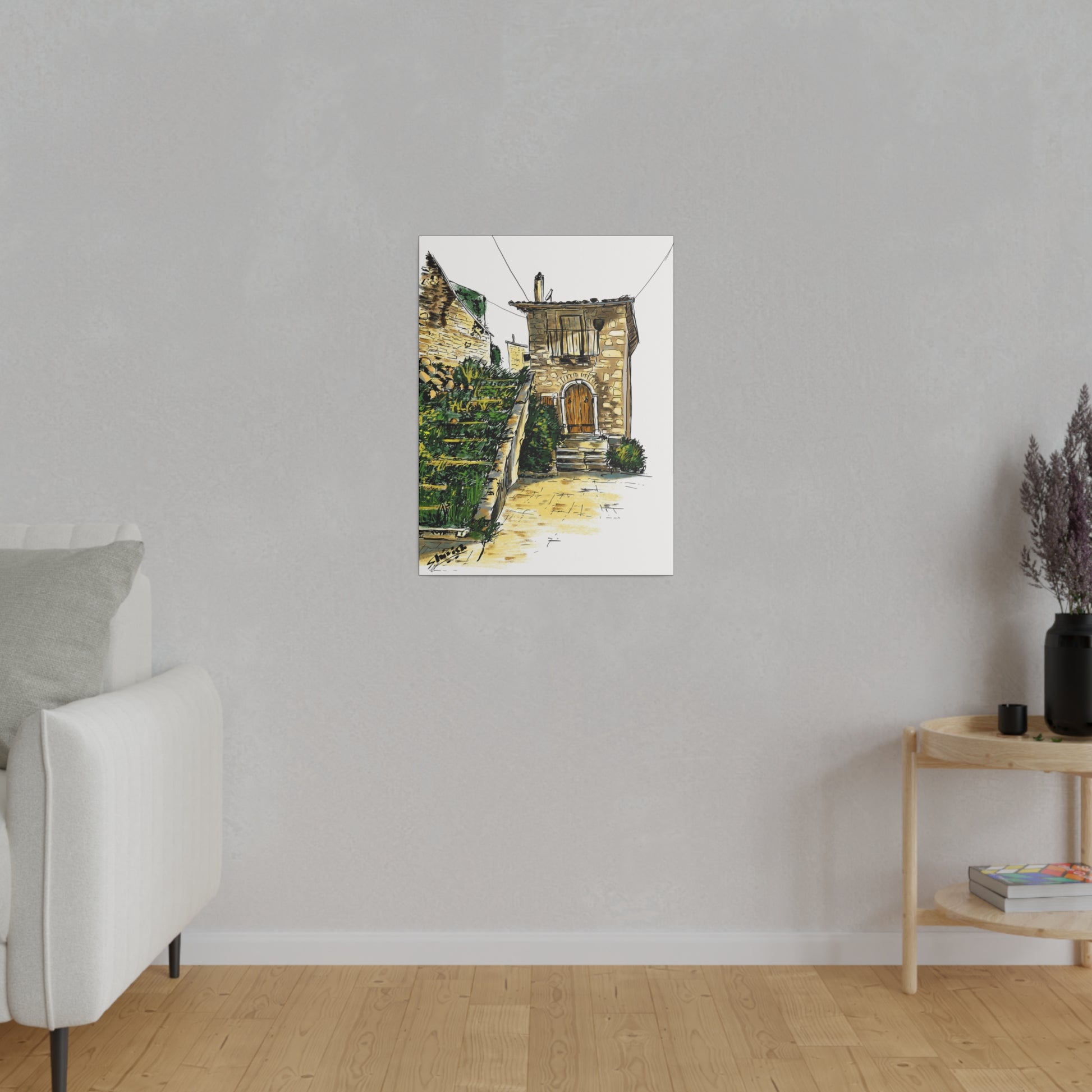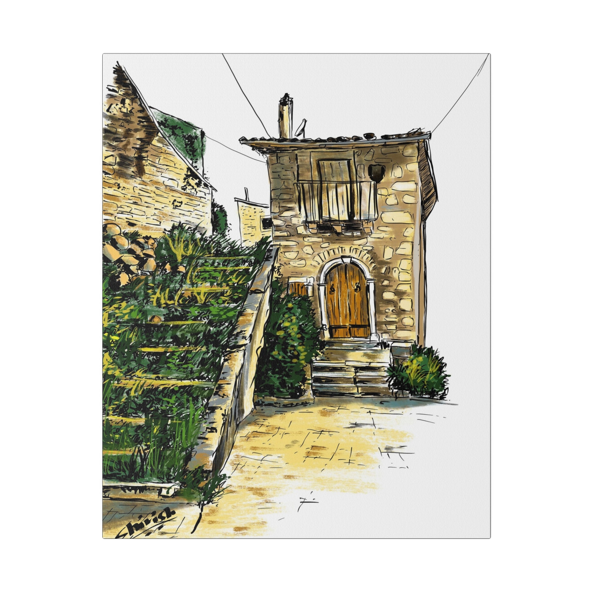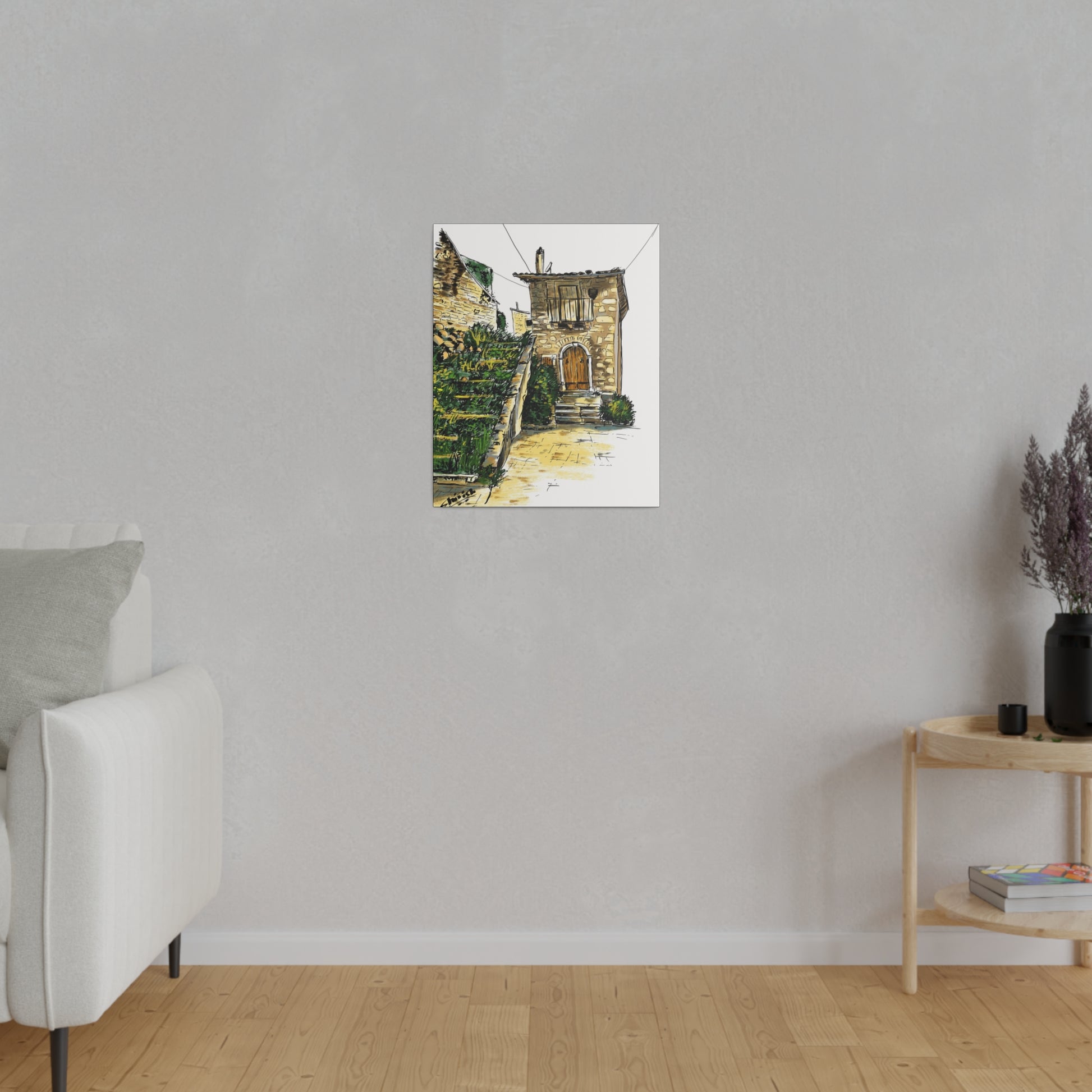 Embark on a journey through time with this captivating canvas print. A flight of stone stairs, overgrown with lush green weeds, beckons you towards an ancient town steeped in history. Flanked by crumbling old stone buildings exuding rustic charm, this scene transports you to a bygone era where every step holds the secrets of the past. Let the enchanting allure of this artwork adorn your space and ignite your imagination.
